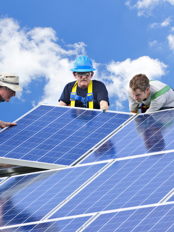 Instalación de paneles solares y sistemas de almacenamiento de energía.